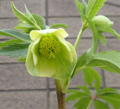 北バルコニー在住のヘレボ.数日前から開花スタート.開花一番乗りだったのは,SSセルビクス(グリーン)×SSイエロー.