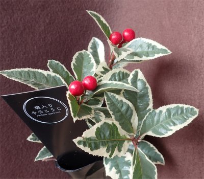 ラベルの「実用新案出願済」ってのが気になる.偽物の赤い実を斑入り葉と組み合わせるのが特許になるんか?とアホなことを考えてしまった…(^^;(^^;