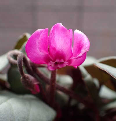咲き始めの原種シクラメン・コウム.(左は1/4,右は1/5撮影)