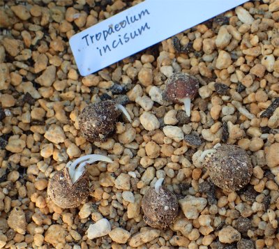 種まき鉢を北バルコニーに置いていたTropaeolum incisum.