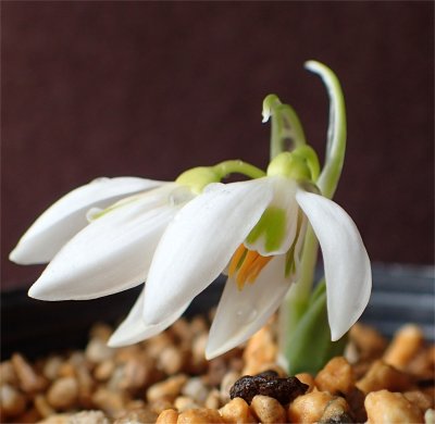 北バルコニー在住のスノードロップに2つの花茎が出て来ているもの発見.先日独立させて異なる角度から撮影.