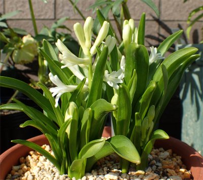 ヒヤシンス・オリエンタリス(Hyacinthus orientalis)白花の開花が始まった.