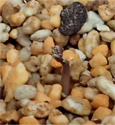 種をたくさん播いてたくさん発芽したTropaeolum incisum.その後ちっとも音沙汰が無いと思っていたところ,チョコッと地上部に頭をもたげてきたものがあったので記録しておこう.