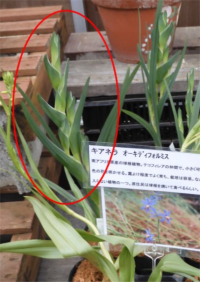 先日行った京都のまつお園芸さんで,横山園芸産のフェラリアが販売されていた.画像中央,赤丸印がその植物.
