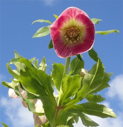 このヘレボ,花弁の裏側は白っぽい.そして茎がやけに太くて力強い.何やら存在感のある株.
