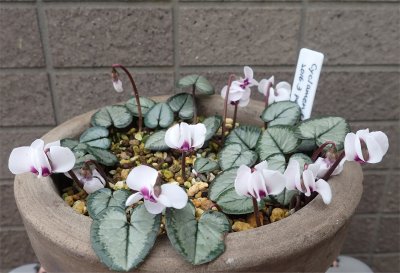 白はピューター・リーフ.とんでもなく小さな葉しか出ていなくて大丈夫か?と思っていたが,肥料をあげたら葉は肥大,おまけに花芽もちゃんと付いて開花スタート.3/1に1輪目が開花.いつもながら花茎が短く超コンパクトに見える.