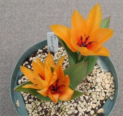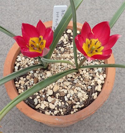 北バルコニー在住の原種チューリップたち.どれも今季入手したもの達.一部が開花し始めた.名前は違うけど咲いたら似たようなモンもある.