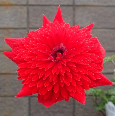 咲き始めは一重かい?と思える状態だったが,次第に開いてきて全開になるとまるでダリア.(~_~;)