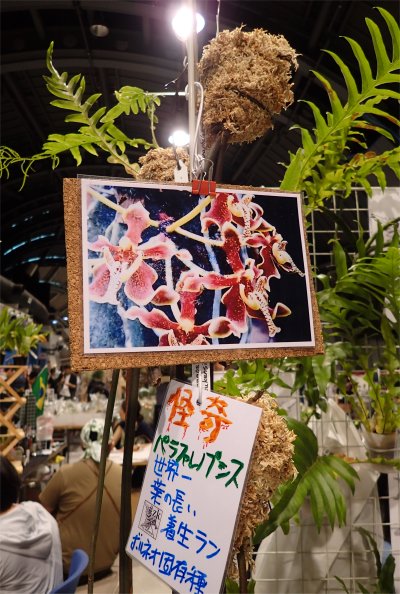 この方が手に持っておられるのが世界一長いラン(パラファレノプシス)と言われているもの.ここに展示されているものでもずいぶん長かったが,最長2m50cmくらいになるとか.