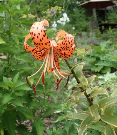 虫に食われ可哀想な状態だった庭の斑入りオニユリだったが,花芽を付けて無事に開花.前回蓼科を去る前に見たツボミは怪しい状態で,こんな花芽でうまく咲くかなぁと思っていた.無事に開花でハッピー・エンド.