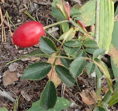 ロサ・カニナは今季ミヨシで入手した時に青い実が着いていた.地植えにしてもまだ20cmほどのチビ丈.