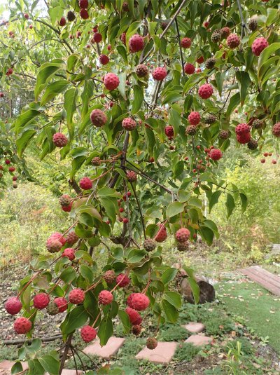 ヤマボウシも先住人.実で枝が重そうにしなっている.実は食べられるらしいが,イマイチ食欲がわかず…(^^;