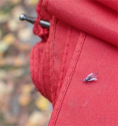 早速昨日の散歩時,白い虫が空中で飛んでいるのを発見,「これが雪虫かぁ」と思って傘を出してみるとそこに着地.初めて虫の実体を見た.ジッとしているとあまり白くない.アブラムシの一種らしく,北海道では大量に飛んで視界が悪くなることがある,と聞き「目や口や鼻に入ったらイヤ!」と思ってゾッ~とした.(-_-)