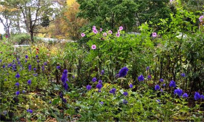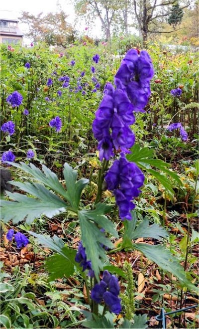 ウチのトリカブトはもう花が終わり種が出来かけている.バラクラの方が花が遅い.半日陰地だからかな.それでも相当な株数に圧倒される.まさに青コーナーといったところ.(^^)