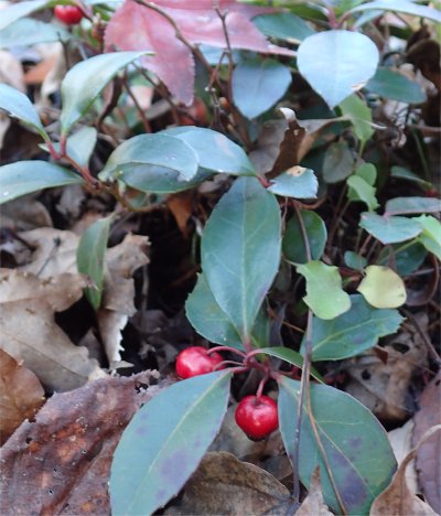 右画像はチェッカーベリー.日陰に植えているが少し実をつけてくれた.