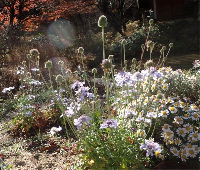 しっかり開花中だったのがソナレマツムシソウとアシズリノジギク.
