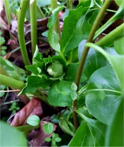 数年前,マンション裏の公園に植えたヘレボたち.遠目に見ていて今季はちっとも花芽が上がって来ないなぁと思っていた.そこで本格的にチェックすることに.