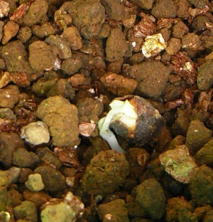 海外から入手したものと自家採種ものの2種類有り,別ポットで種まき.前者からは3個,後者からは1個の芽割れを確認.そのままそっと土に埋め戻す.