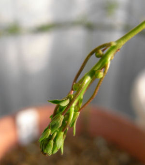 小さな花芽が付いている.快晴で気温の上がった今日,南ベランダでは最高気温13度程.12月とは思えない暖かさ.