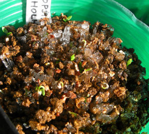 青ケシの種をまいたビニールポット.品種はMeconopsis lingholm.