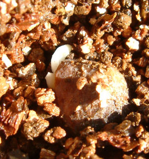 結果,5~6個の種が芽割れしているのを確認.寒さにあたって芽割れしたのかも.こうなると「寒さ様々」だ.