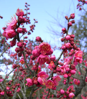 先日日曜日に万博記念公園・梅林で撮った紅梅.