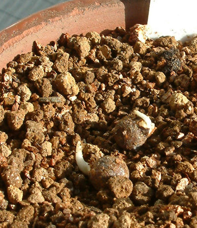 先日発根を確認してポット上げした種からはまだ地上部に新芽が出てこない.少しずつ根を伸ばしている模様.この種もそのうちポット植えにしなくては…と思いつつ,また土をかぶせておいたのだった.(^^;