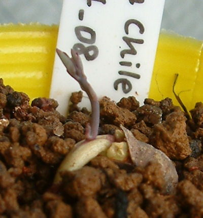 どうやら芽割れした後,ひたすら地下部を充実させていた模様.道理で地上部は貧相な訳だ.(~_~;) で,この株はその後ロングスリットポットにおさまってもらった.どこまで地下部が充実するかが開花のカギになるんだろうか.となるともっと大きな鉢に植えた方が良かったのだろうか.まだ見ぬ花に栽培は試行錯誤を繰り返している.