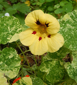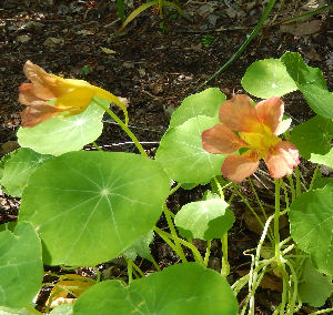 支柱があっても何のその,鉢から飛び出してのたうちながら地面で咲いているのはsmithii.季節問わず環境が合えば咲くタイプ.大阪は冬から春,蓼科では春から秋と気が向けば咲いている.