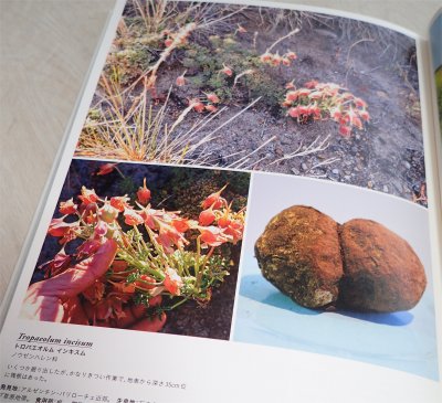 通訳の小野地さんを交えてジョセフさんに何を育てているか聞かれたのでTropaeolumを育てていると言うと驚かれて本の中にTropaeolum incisumが載っている,とそのページを開いて見せてくれた.incisumも栽培していると言うとさらに驚かれた.(^o^) そしてイモを食べたことがあるかと聞かれ,思わず「そんな!もったいないですやん,食べられませんよ~」と答えてしまった.(^^; ジョセフさんによるとわさび味がするんだとか.ふむ,ナスタの種と一緒なんだ.(・_・) 面白い!(^o^)