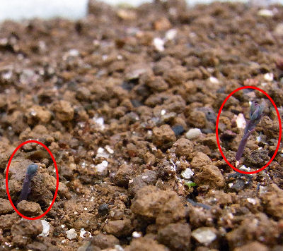 左がUK-1号,右がUK-2号.昨日2号が発芽し,今日1号が発芽した.とりあえずこれで一安心.冬の間は暖かい大阪でグングン伸びて欲しい.