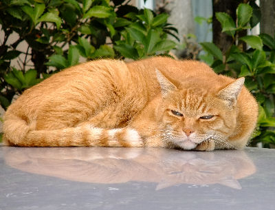 そして画像右はホンモノのネコ.車の屋根に乗っており,声をかけると「なんやねん?」と面倒そうに薄目をあけていた.こっちに来たら遊んであげるのにね~~.(^o^)