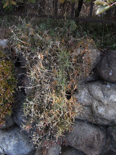 これは道路に面した石垣に植えられて,もちろん雨ざらし.上には生け垣がある.