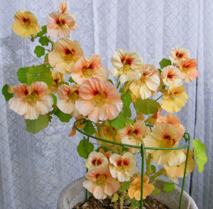 左端画像は現在開花中のトリコロール13号の全体像.そして中央がその花の横顔.