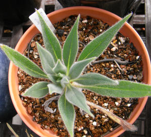毛皮をまとったような葉だからいかにも耐寒性は強そうに見える.