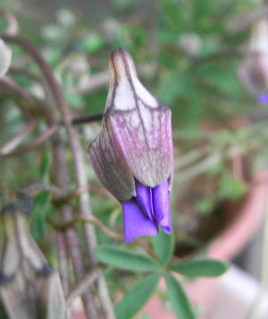 花弁が見えてきたが,なかなか花が開かない.このところ天気がパッとせず気温も低く,花も開く気にはなれないらしい.今日は日射しが少しあったので,その分花弁の見える部分が少し増えた.