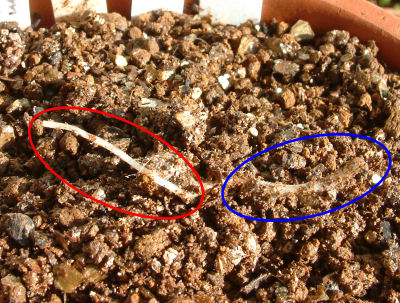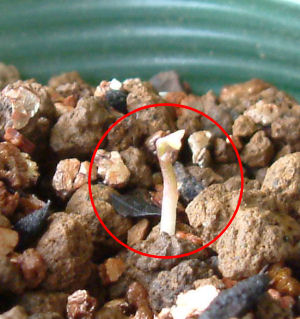 右はT.beuthii, leptophyllum, speciosum,ciliatumの種が入った鉢から出たもの.