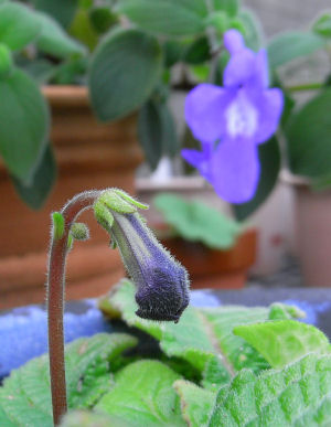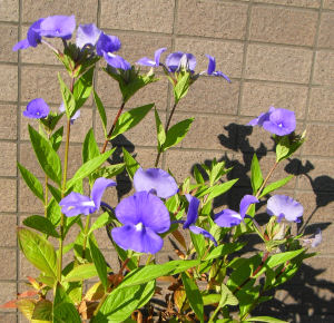 出かける前には全然花の気配も無かったブルーキャッツアイが見事に咲いていた.この花,いつも晩秋に咲く.昨年購入した株で,これだけ大きな花が咲いてくれたら大満足.これも冬場ずっと無加温ビニール温室で過ごし,葉を落とさずにいたおかげかもしれない.この冬もまたビニール温室で過ごしてもらおう.