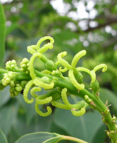 この木,ずいぶん樹高が高くなるようで,大木の大輪花といった感じ.花は直径20センチ近くあったのでは,と思う.花色が白という所もジャスミン等と同じで熱帯系っぽい感じ.存在感のある植物.