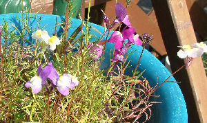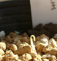 さて,そのムスカリは無事に発芽し地上に顔を出している.同居しているのはアズレウム同士ではなく,不明株で黄色い花が咲くトロパ仲間である.