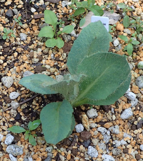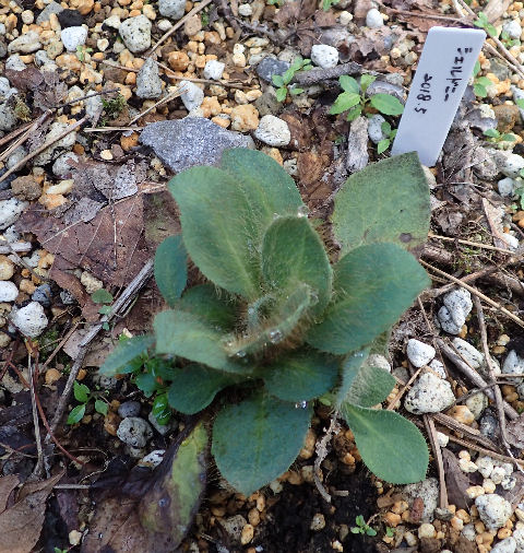 手前のDahlia 'Honka Rood'(赤)と奥の背が高いDahlia 'Honka Roze'(ロゼ).赤の方は黄色みのかかった花色.ロゼは赤と似ているが比べるとやはりピンクがかっている.