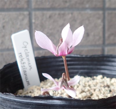 蓼科ネタの合間にちょこっとだけ大阪ネタ.元来何も無い季節だが,驚いた事にシクラメンのヘデリが花芽を持っていて(左画像:7/21撮影)本日開花を確認.(右画像:7/23撮影)