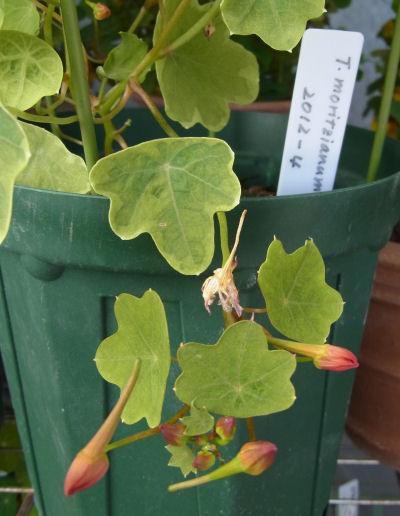 今朝ベランダの植物を見ていたらチベタヌスの茎がクタッとなっているのを発見.