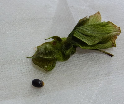 種鞘もヘタっていたが中を開けて見ると…たった1粒の種.あんなに膨らんでいたのにたった1粒かいっ!?というツッコミはさておき.