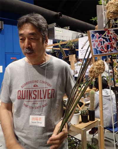 通訳の小野地さんを交えてジョセフさんに何を育てているか聞かれたのでTropaeolumを育てていると言うと驚かれて本の中にTropaeolum incisumが載っている,とそのページを開いて見せてくれた.incisumも栽培していると言うとさらに驚かれた.(^o^) そしてイモを食べたことがあるかと聞かれ,思わず「そんな!もったいないですやん,食べられませんよ~」と答えてしまった.(^^; ジョセフさんによるとわさび味がするんだとか.ふむ,ナスタの種と一緒なんだ.(・_・) 面白い!(^o^)