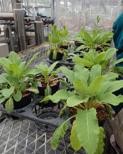 チベタ開花間近株や開花株フェチダス,ハイブリッ子@可愛い花にちょっとそそられたけど,車ではないので重いものは買えない.なのでパス.