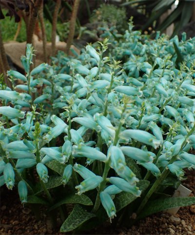 左は2014年種を頂いて栽培していたが,ようやく花芽が付いた株.SDバイカラーライムグリーン×DDグリーンゴールドの交配株.花色はグリーンだが,咲いたらどんな感じになるのかな?