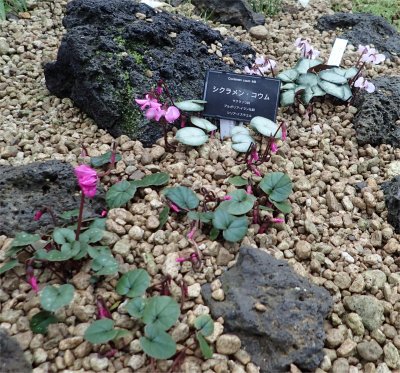 今月初旬に行った咲くやこの花館の一角にシクラメンの鉢発見.