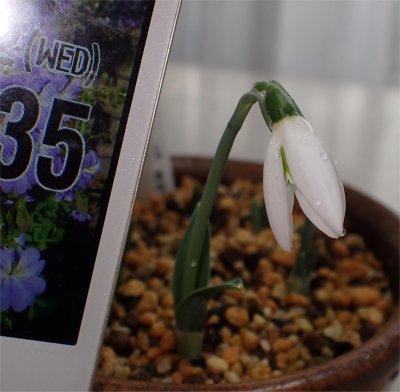 月イチガーデナーさんに教えてもらったスノードロップの室内取り込み実験実施.