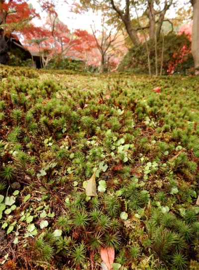 ここも紅葉がきれい.そして苔もきれい.大きなカメラで,スマホのカメラで,人々は思い思いに写真を撮っていた.流行の苔女だったらきっと這いつくばって苔を観察するんだろうなぁ.そんな人は見かけなかったけど.(^^;